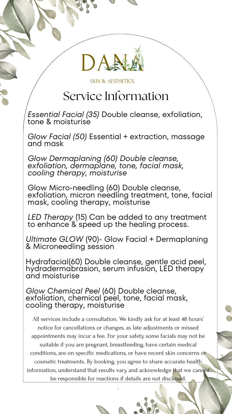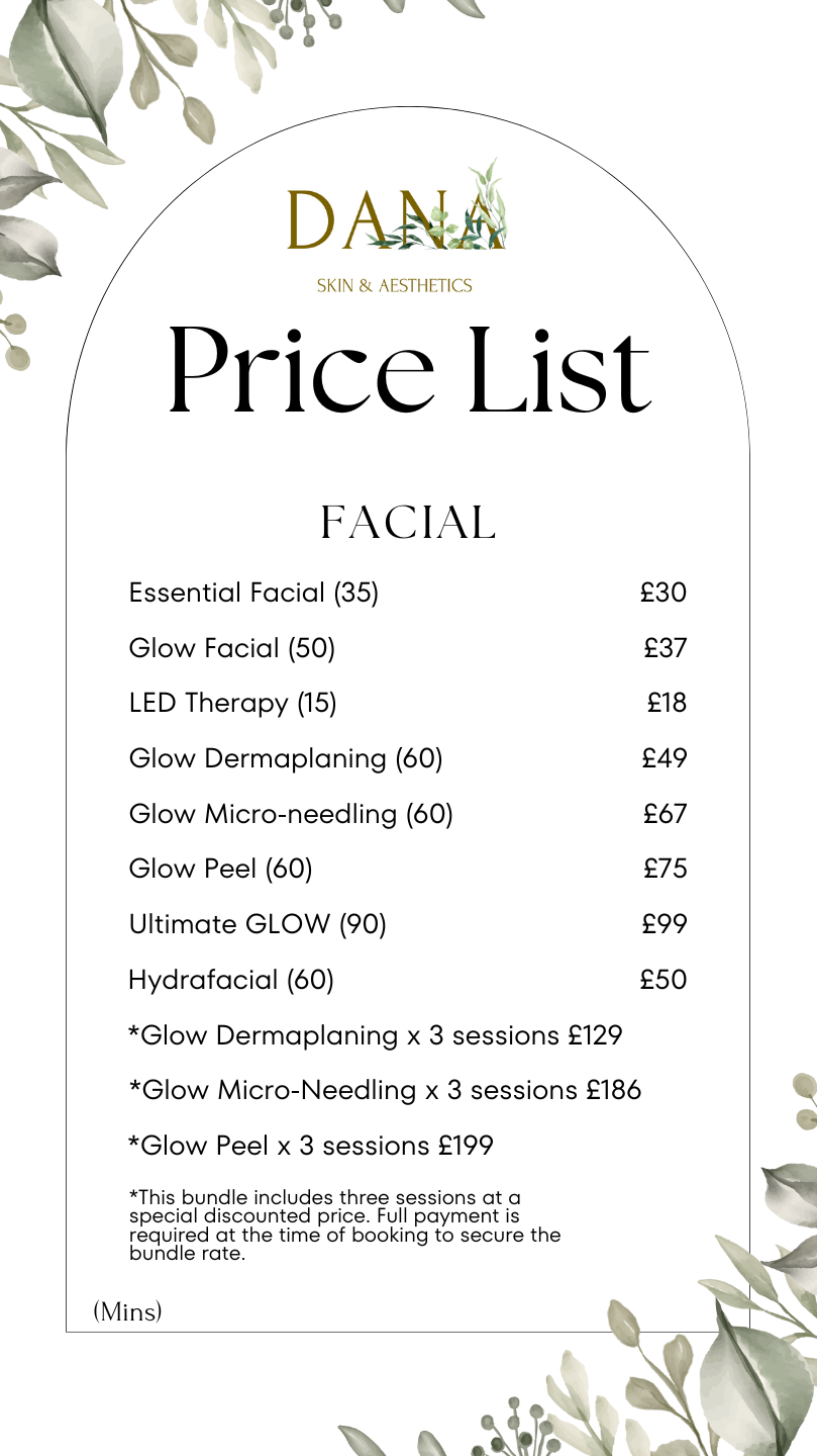 All of our prices come inclusive of a full facial experience, complete with the indulgent Glow Facial, ensuring your skin looks and feels luminous after every visit.